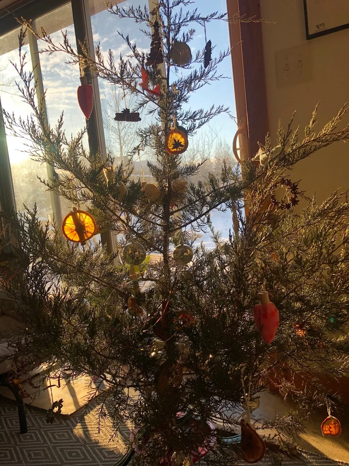 In the meantime, I’ll be here gazing at my tree and the adorable dried orange decorations Max made while he was home last week and considering getting back in bed to read a little more as I wait for the house to warm up.