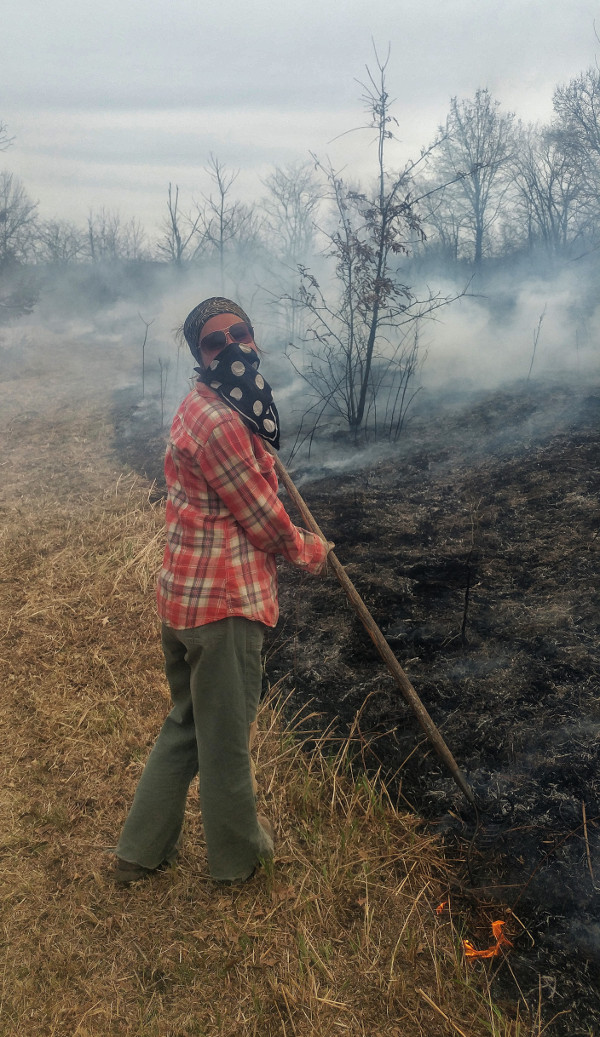 Friday a group of us burned one of our CRP prairie fields over against Red Earth land on our west side. Wind has been strangely more from the East in recent weeks, our least typical wind direction. That meant it would blow toward Matt and Carolyn's homestead across the fence line rather than away, but we went ahead with it with their permission.