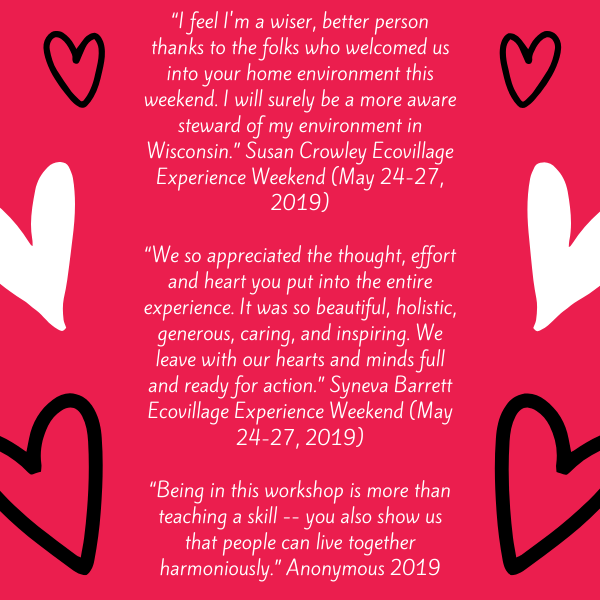- New residents coming, and learning from our members who are transitioning away from consumer culture.