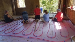 After another round of community discussion, it was decided that DR would be open for a visitor program in May, with a natural building workshop in June. I’ll be assisting with the natural building workshop, offering SubHub as a site for some workshop activities. Students will be helping to finish the subfloor in the kitchen, pouring cob plaster over tubes for radiant floor heating. Warm water flowing through the tubes in the floor will release warmth into the kitchen.
