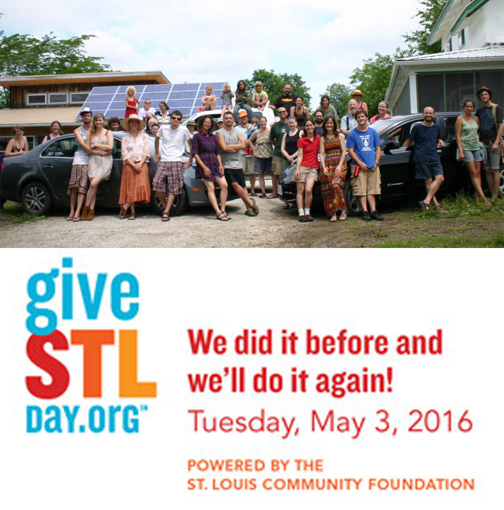 Springtime is fast approaching, and the heat is on! Once again our nonprofit, the Center for Sustainable & Cooperative Culture at Dancing Rabbit Ecovillage, is participating in Give STL Day, which will be held on Tuesday, May 3, 2016. Last year we had so much fun together in the Common House, delighting in your enthusiasm for sustainable living with online supporters, and keeping track of our progress! Please mark your